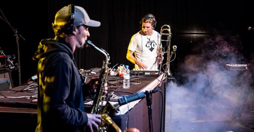 Sax Machine is an alchemical formula imagined by talented saxophonist Guillaume Sené (Like Jam, Pillac) and Pierre Dandin (trombonist of Sergent Garcia, Malted Milk and Mix City) that transforms the art of improvisation into a mesmerizing brass colored groove mixed and merged with loopers and machines.